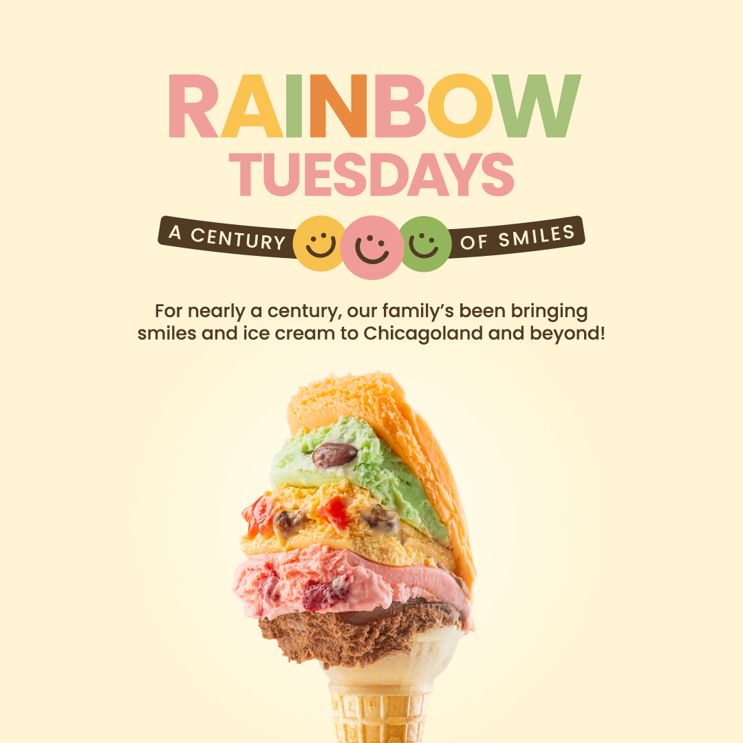 We’re offering $4.99 Rainbow Cones every Tuesday at participating locations for a limited time! Indulge in a five-flavor combination like no other.