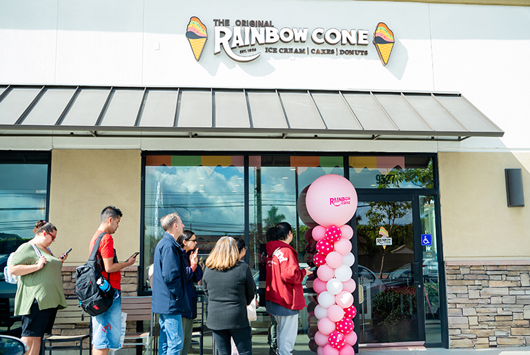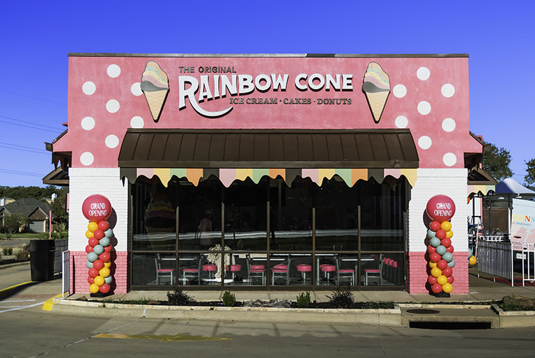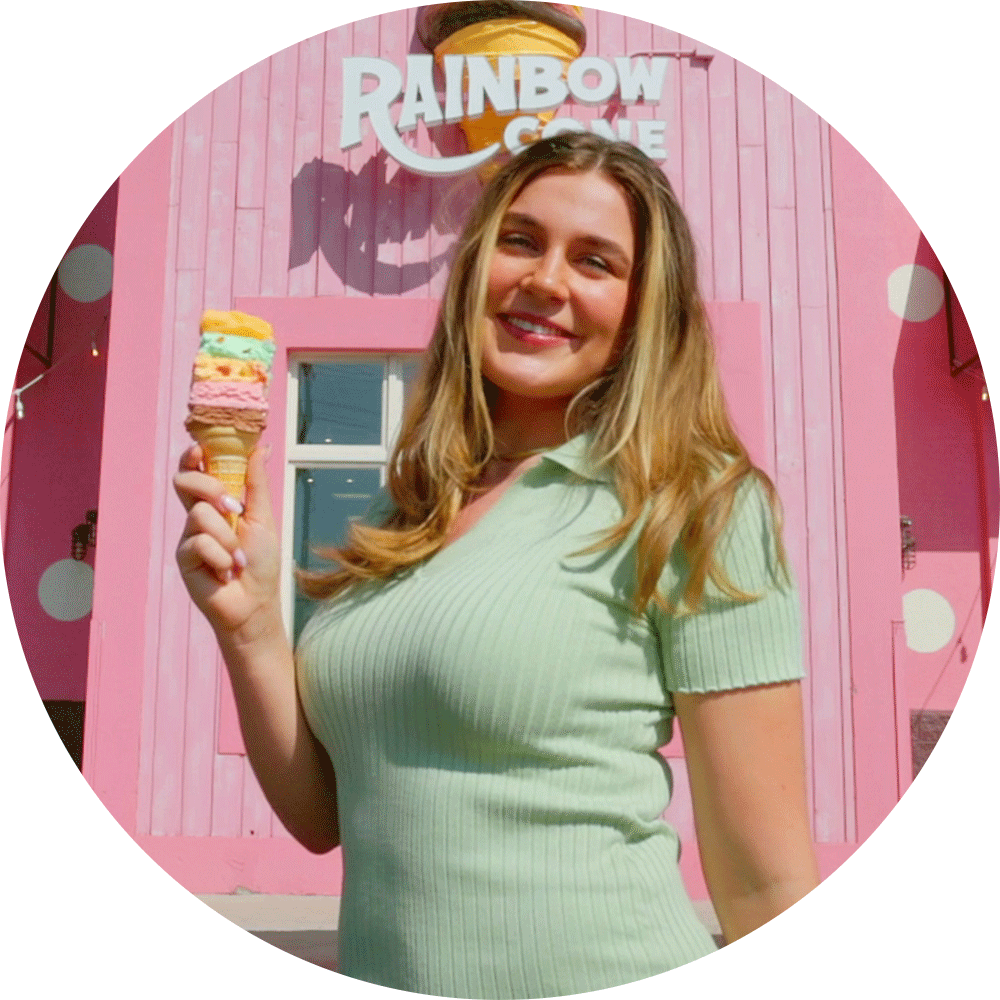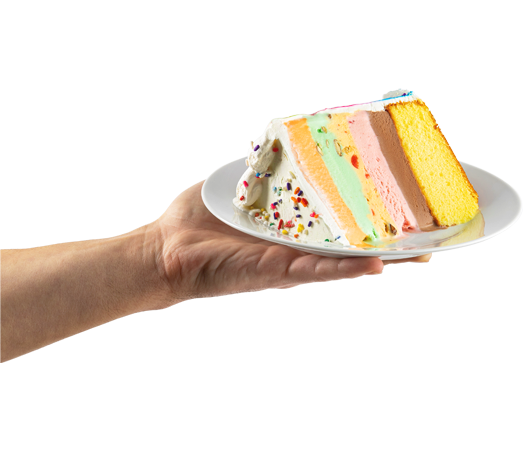 Our legendary winning combination of Rainbow Cone flavors, layered on top of a delicious cake.